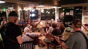 didn’t recognize a single tune, but I sat and listened for two hours; keeping time with my feet. This group obviously ‘picked’ often together. They sometimes chatted during songs while taking small individual breaks. Most of them had a beer sitting on the floor beside their chair.