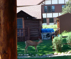 Our view is entertaining. The shuttle bus runs every hour, the activity of people going to Sweet Memorial for programs, the pool building is close, the craft building is next door, and people walk the trails next to us, day campers use our yard for snack time or lunch.